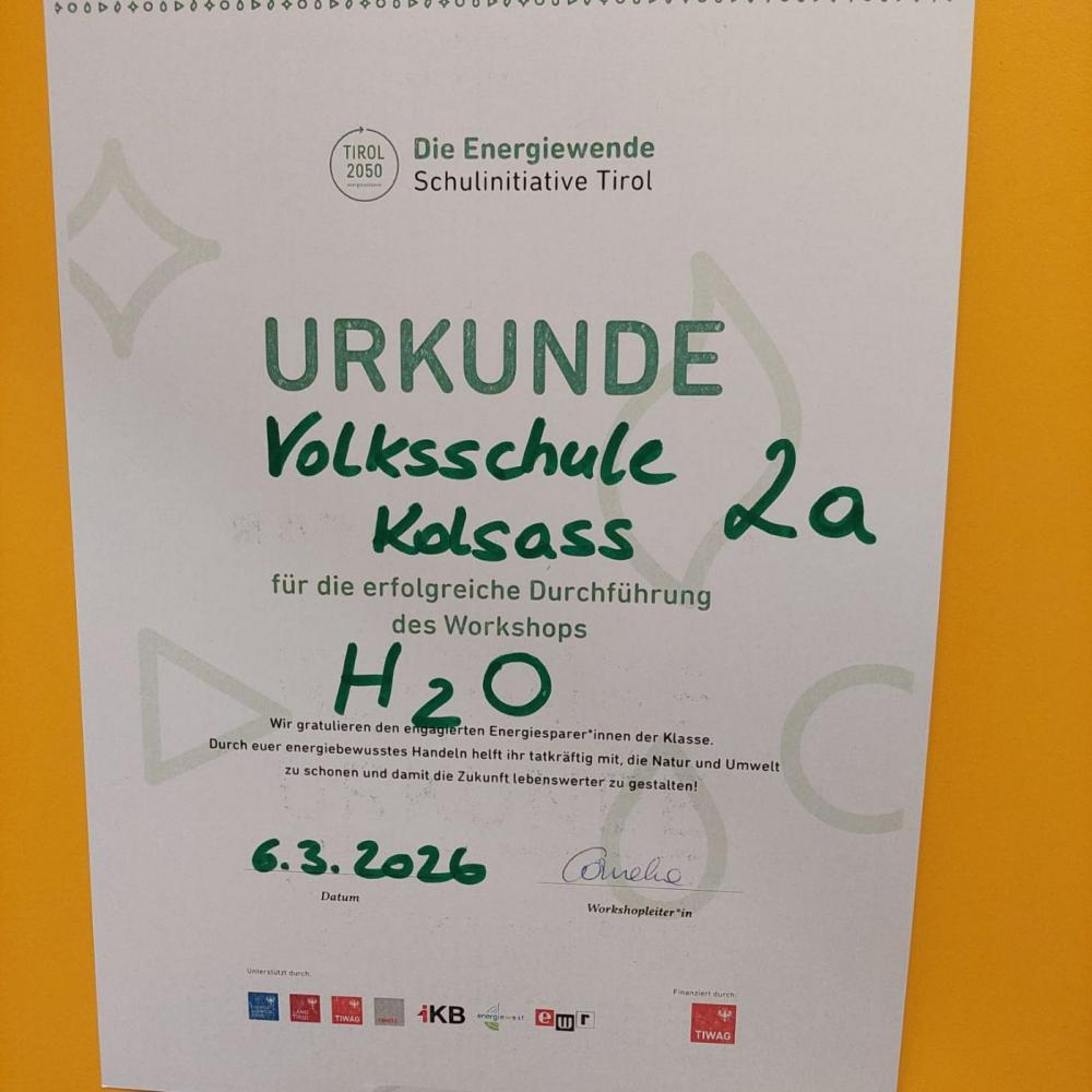 H2o Workshop 2. Klassen von Sarah Piber 09. März 2026 Im Sinne des Energieprojektes durften wir heute zwei Stunden lang an einem Workshop teilnehmen. Wir durften selbst experimentieren, einen Wasserkreislauf und ein Wasserkraftwerk bauen. Danke Cornelia für den lehrreichen Vormittag!